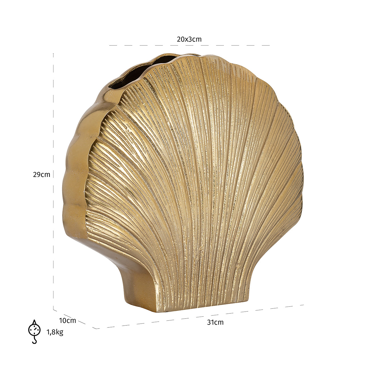 Vaas Noé is gemaakt van goudkleurig aluminium en heeft de vorm van een schelp.