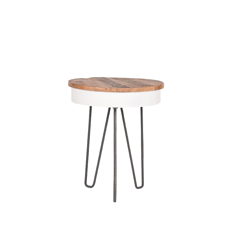 LABEL51 Bijzettafel Saria - Wit - Mangohout - 44 cm - Rond