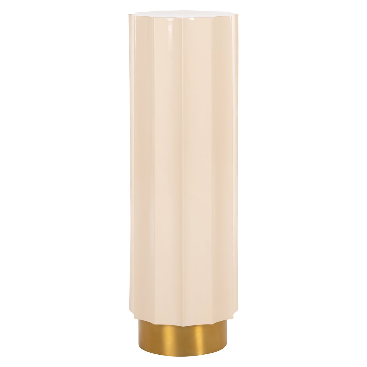 De Isabelle pilaar is een elegant en strak vormgegeven meubelstuk, vervaardigd uit ijzer. Het ontwerp wordt gekenmerkt door zijn geometrische, gefacetteerde vormen die de pilaar een moderne en stijlvolle uitstraling geven. De basis is voorzien van een subtiele gouden afwerking, wat een vleugje luxe toevoegt aan het geheel. Deze stevige en duurzame pilaar is perfect als decoratief element in diverse interieurs, ideaal voor het presenteren van kunstwerken, vazen of andere decoratieve items. De Isabelle pilaar voegt verfijning en klasse toe aan elke ruimte.