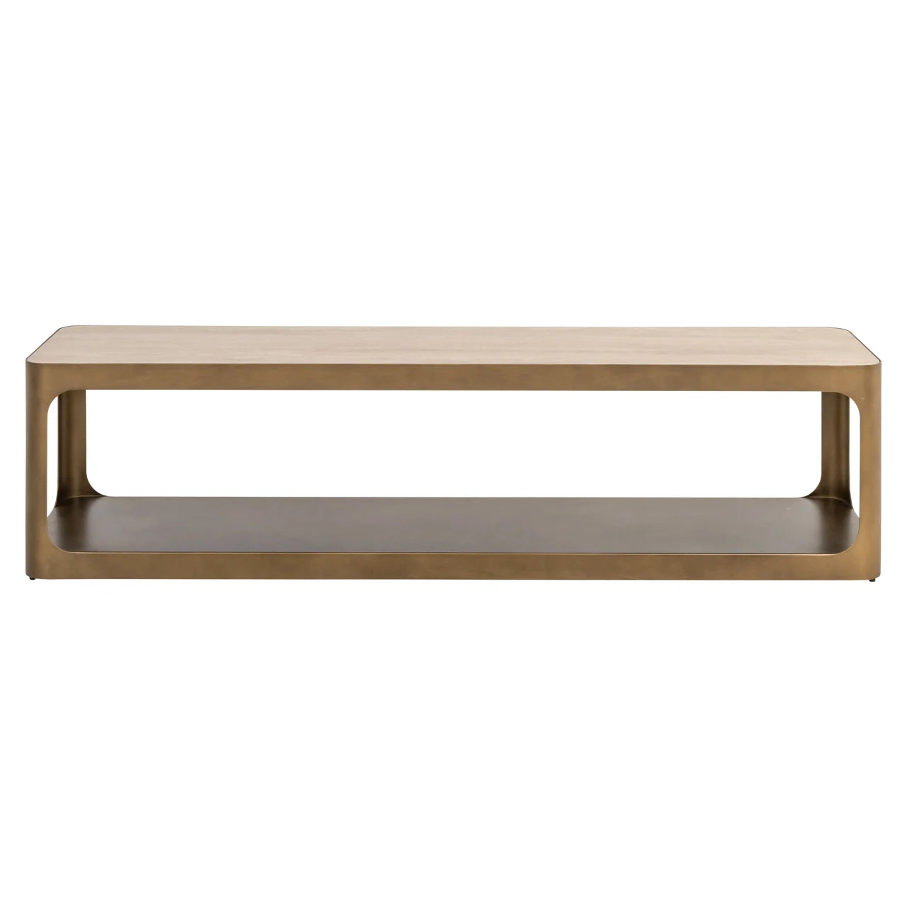 TV-meubel Claridge biedt een flexibel ontwerp met een omkeerbaar blad: kies tussen zwart glas of keramisch travertin. Kan ook gebruikt worden als lage salontafel.