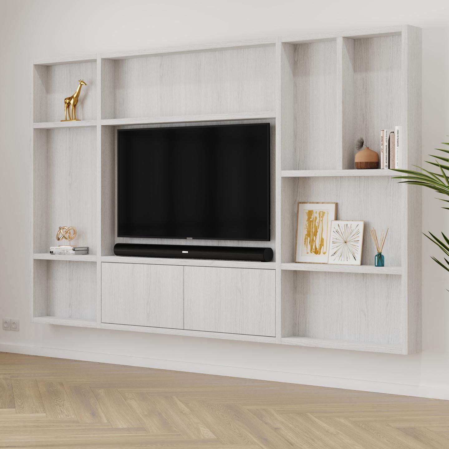 Breng een frisse en verfijnde uitstraling in je interieur met de Flatbox Cinewall in White Oak.