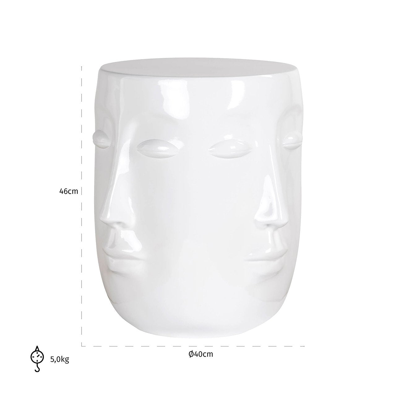 De Bijzettafel Christy is een uniek en artistiek meubelstuk dat een vleugje originaliteit toevoegt aan uw interieur. Deze tafel, met een opvallend design dat een gezicht omvat, is een echte blikvanger. Vervaardigd uit polyresin, een duurzaam en veelzijdig materiaal, biedt deze tafel zowel stevigheid als een verfijnde uitstraling. Beschikbaar in twee elegante kleuropties: een frisse, moderne witte en een luxueuze, opvallende gouden variant, past de Bijzettafel Christy in diverse interieurstijlen.