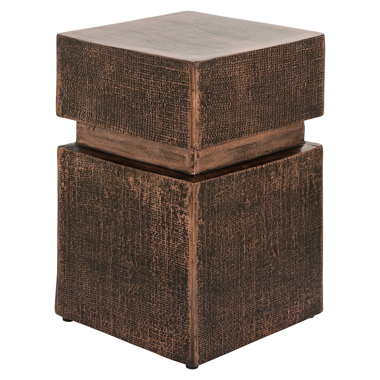 Bijzettafel Nox is een stijlvolle toevoeging aan elke woonruimte, vervaardigd uit koperkleurig aluminium.