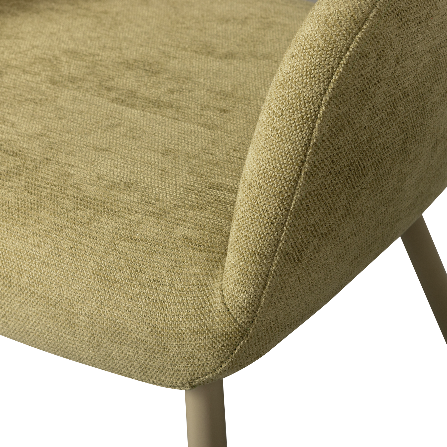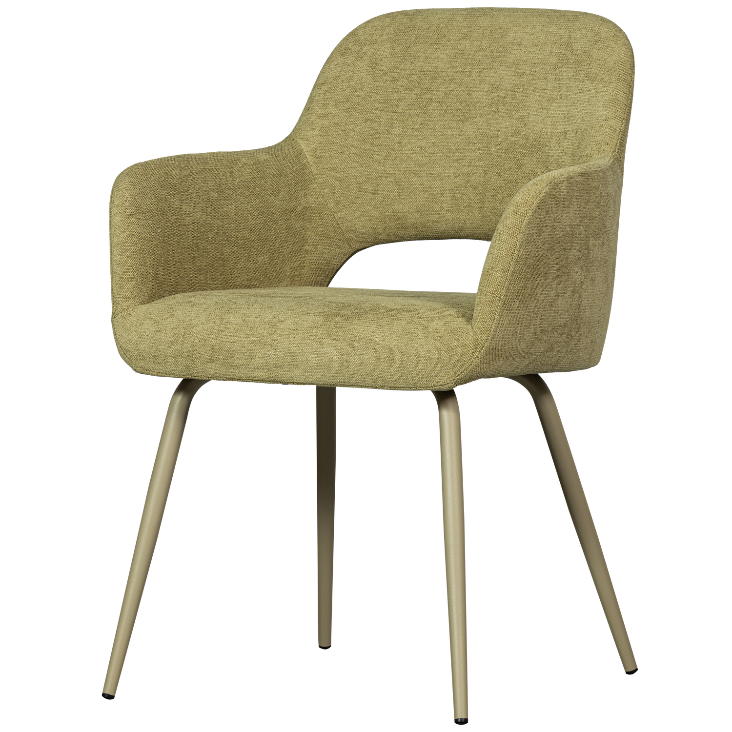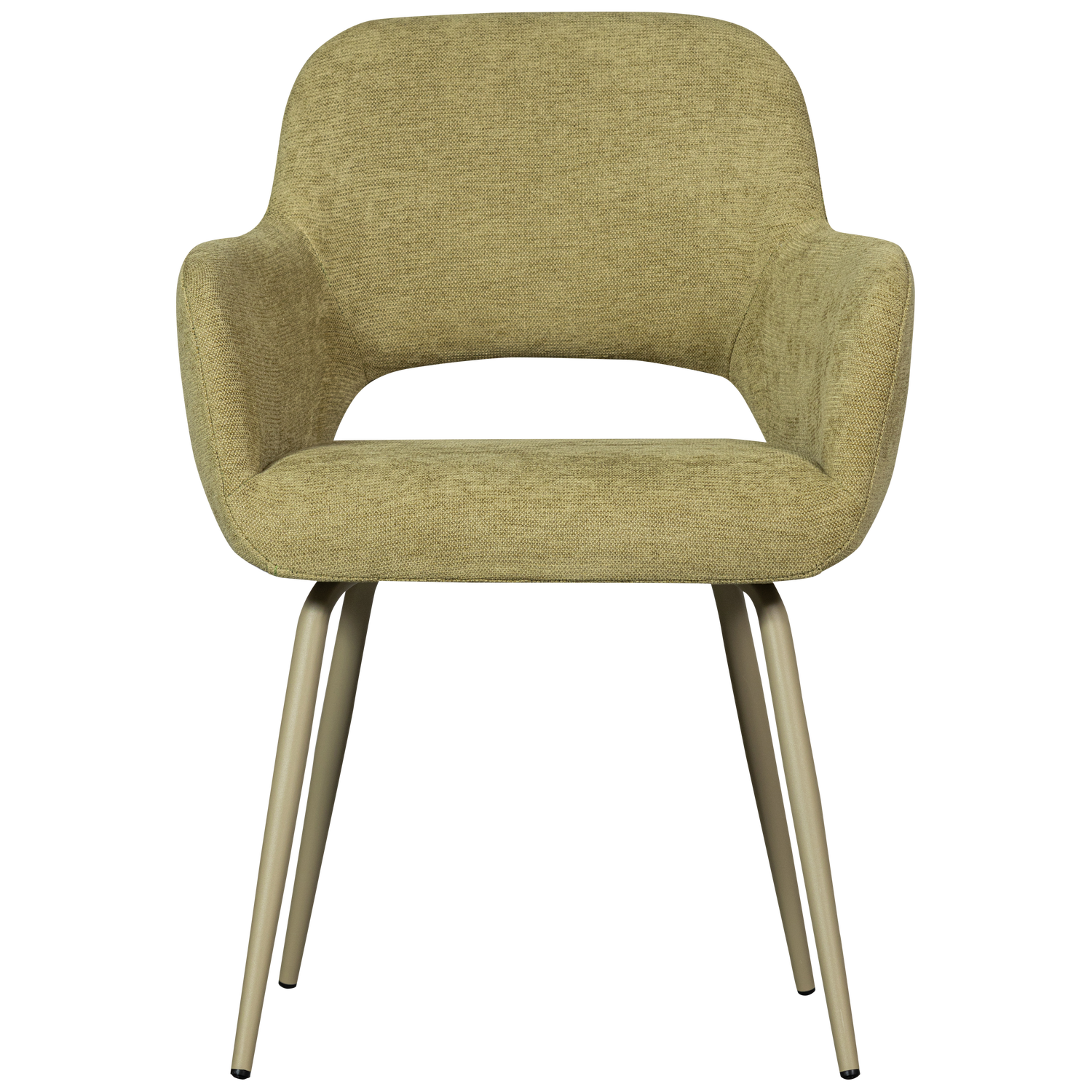 Trendy eetkamerstoel Jenny met een duurzame geweven stof (100% PES). Deze comfortabele stoel met een olijf groene kleur is een blikvanger in ieder interieur.