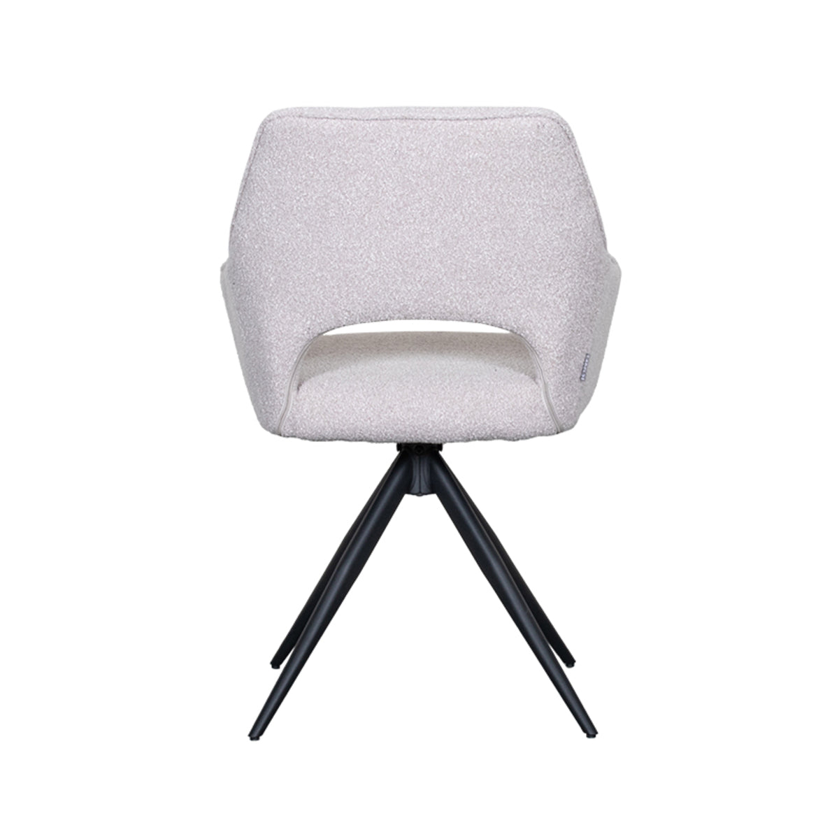 Eetkamerstoel Finley van LABEL51 is een elegante en moderne toevoeging aan elke eetkamer. Deze stoel, uitgevoerd in de trendy stof boucle, heeft een luxe uitstraling door zijn zachte textuur en subtiele structuur. De naturel kleur van de stof zorgt voor een tijdloze en stijlvolle uitstraling, waardoor deze stoel perfect is voor een minimalistisch of modern interieur. De afgeronde rugleuning en armleuningen zorgen voor extra comfort en omarmen je tijdens het zitten.