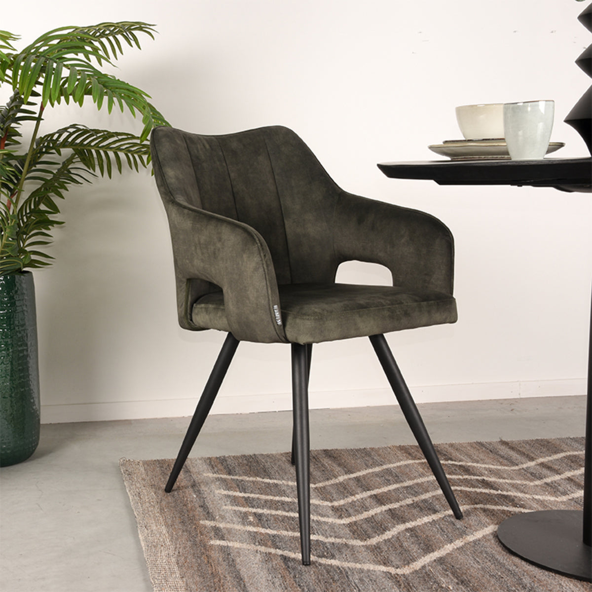 Eetkamerstoel Noud van LABEL51 is een prachtige armstoel uitgevoerd in hunter velours, waar comfort en verfijning samen komen.