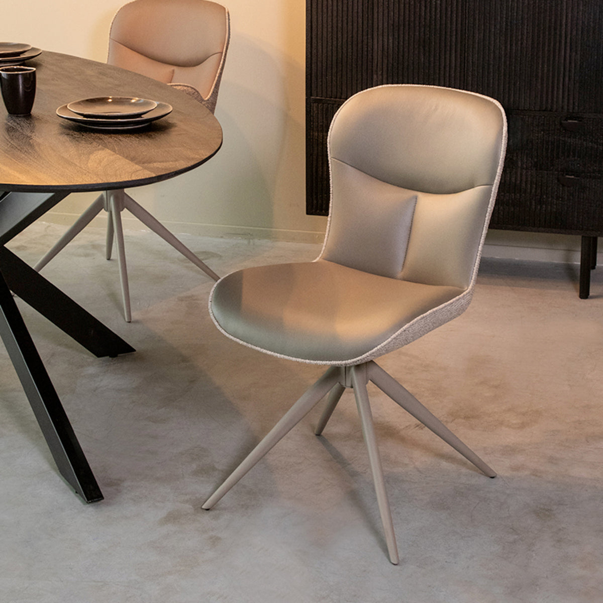 Eetkamerstoel Thorben van LABEL51 is een stijlvolle en moderne stoel die elke eetkamer naar een hoger niveau tilt. Het zitvlak van de draaistoel is uitgevoerd in Hunter PU, wat er elegant uit ziet en bovendien makkelijk te onderhouden is. De achterkant van de zitting is gestoffeerd met Naturel Canyon, wat zorgt voor een mooie, contrasterende textuur die warmte toevoegt aan elk interieur.