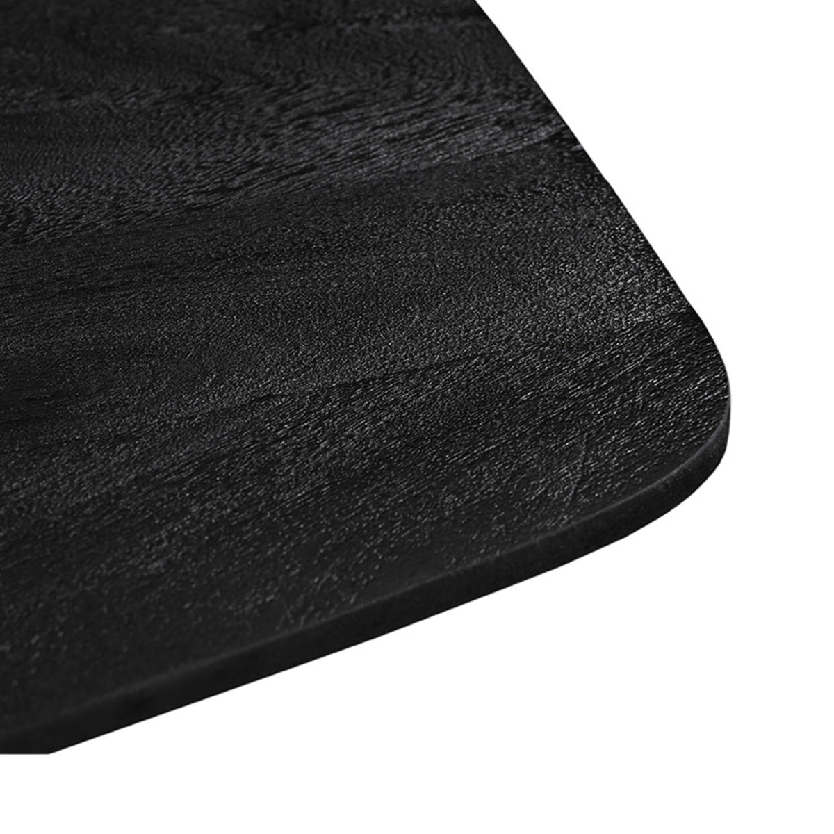 Met eettafel Blake breng je karakter en sfeer in je interieur. Deze tafel is een echte eyecatcher, uitgevoerd in prachtig Zwart Mangohout, wat zorgt voor een warme en luxe uitstraling. Het vierkante houten blad, met subtiel afgeronde hoeken, biedt een royale ruimte die perfect is voor gezellige etentjes. Of het nu gaat om een tapasavond of een tafel vol goed gevulde borrelplanken, het grote tafelblad van Blake heeft meer dan genoeg plek voor al je culinaire creaties.