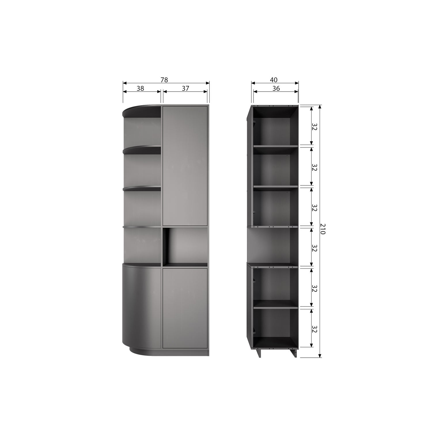 - Stijlvolle meubelserie in diep zwart - Met modern push-to-open systeem - Gemaakt van massief grenenhout - H 210 cm x B 78 cm x D 40 cm Stijlvol, tijdloos en modern.