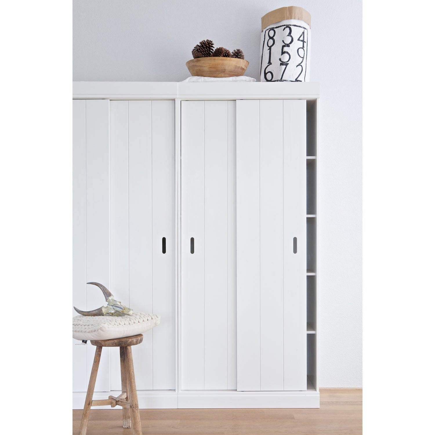 Trendy Opbergkast Makkelijk Een Kastenwand Mee Creeren Vervaardigd Uit Grenenhout Met Geborstelde Afwerking H 195 Cm X B 85 Cm X D 44 Cm Deze Trendy Basic Kast Heeft Veel Opbergruimte Door De Meerdere Legplanken. De Opbergkast Komt Uit De Collectie Van Woood. De Kast Heeft Twee Strokendeuren Met Sleuven Gecombineerd Met Een Strakke Sokkel En Koof. Het Voordeel Van Deze Kast Is Dat De Kast Prima In Een Kleine Ruimte Geplaatst Kan Worden Dankzij De Schuifdeuren. Deze Kast Uitgevoerd In Het Massief Grenenhout In De Frisse Kleur Wit. Wat Deze Kast Bijzonder Maakt Is Dat Er Een Mooie Kastenwand Mee Te Creeren Is, Omdat Ze Makkelijk Naast Elkaar Te Plaatsen Zijn. Waarschuwing Kantelgevaar! Voor Kasten Hoger Dan 50 Cm Raden We Aan Om Extra Aandacht Te Besteden Aan De Muurbevestiging. De Montage Van De Valpreventie Voorkomt Ongelukken En Behoudt De Kast Voor Kantelen. Materiaal De Grenenhouten Meubelen Uit Onze Collecties Zijn Fsc Gecertificeerd En Worden Op Diverse Manieren Behandeld. Zo Is Geschuurd Grenen Glad En Netjes Afgewerkt En Staat Geborsteld Grenen Juist Bekend Om Zijn Karakteristieke Nerftekeningen En Doorleefde Uitstraling. Voor Een Nog Robuustere Look Wordt Het Grenenhout Band Gezaagd. Grenenhout Wordt Gekenmerkt Door Zichtbare Vlam En Nerftekeningen. Afmetingen Hoogte: 195 Cm Breedte: 85 Cm Diepte: 44 Cm Gewicht: 48,5 Kg Draaggewicht Per Plank: 15 Kg Onderhoud De Grenenhouten Items Uit Onze Collecties Worden Behandeld Met Een Milieuvriendelijke, Watergedragen Lak Wat De Levensduur Van Het Product Aanzienlijk Verlengt. Behandeld Grenenhout Is Eenvoudig Schoon Te Houden Met Een Lichtvochtige Doek. Om Kringen En Plekken In Het Hout Te Vermijden Is Het Aangeraden Om Vochtige Vlekken Direct Te Drogen. Levering Het Artikel Wordt Geleverd In Twee Pakketten Met Een Minimale Afname Van Een Stuk. Het Artikel Is Eenvoudig Te Monteren Aan De Hand Van De Bijgeleverde Montagehandleiding. Plaats Voor Het Beschermen Van Harde Vloeren Viltglijders Aan De Onderzijde Van De Poten, Dit Voorkomt Beschadigingen. Het Is Aangeraden Om Met Extra Aandacht De Valpreventie Te Monteren Om Ongelukken Te Voorkomen.
