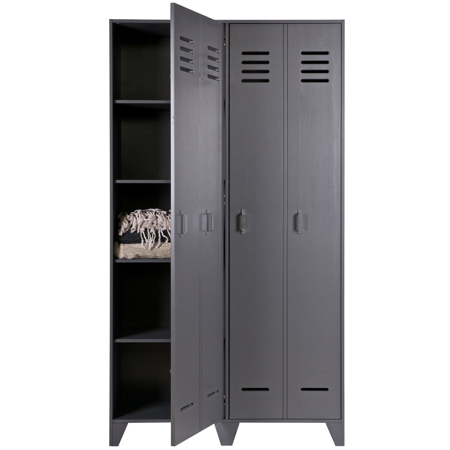 Stijn Is Een Nieuwe Serie Lockerkasten Van Woood. En Stel Stoere Exemplaren Uitgevoerd In Het Massief Grenen In De Kleuren Staalgrijs En Het Frisse Wit. Deze Royale 2 Deurs Lockerkast Is Een Ware Opberger. Achter Iedere Deur Bevinden Zich 4 Legplanken. Om Een Leuk Locker Effect Te Geven Lijkt Het Net Of Er 4 Deuren In Zitten, Voor Het Gemak Zijn Dit Twee Grotere Deuren. Deze Kast Is Ideaal Voor In De Slaapkamer, Maar Ook Erg Trendy Voor Op Een Kantoor. De Kast Wordt Geleverd Als Eenvoudig Bouwpakket Met Een Duidelijke Montage Instructie.
