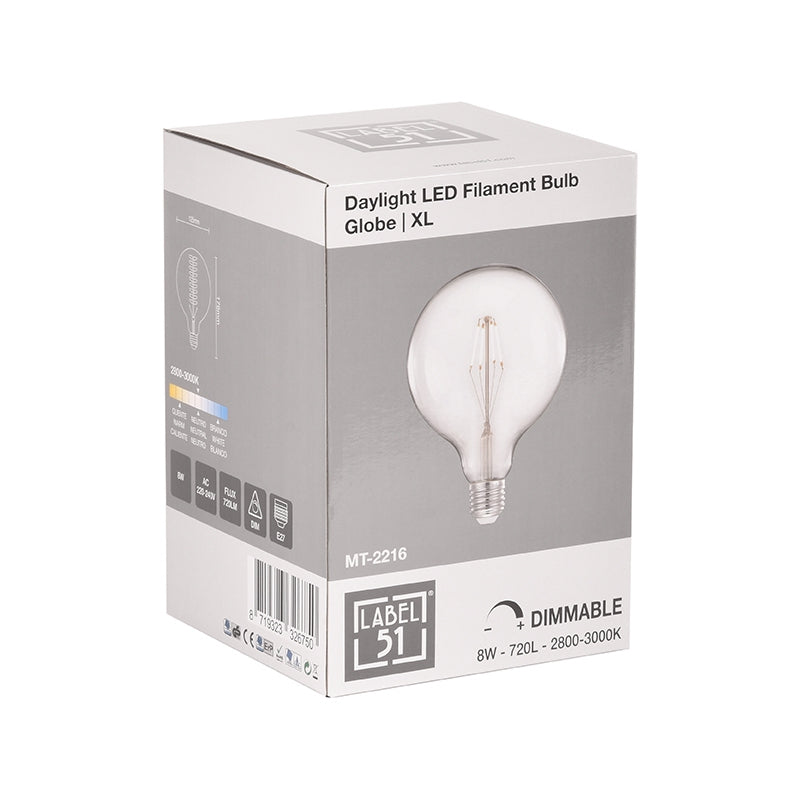 Daglicht LED kooldraadlamp bol XL is een dimbare, transparante en heldere lamp voorzien van LED techniek, waardoor de lamp energiezuinig is.