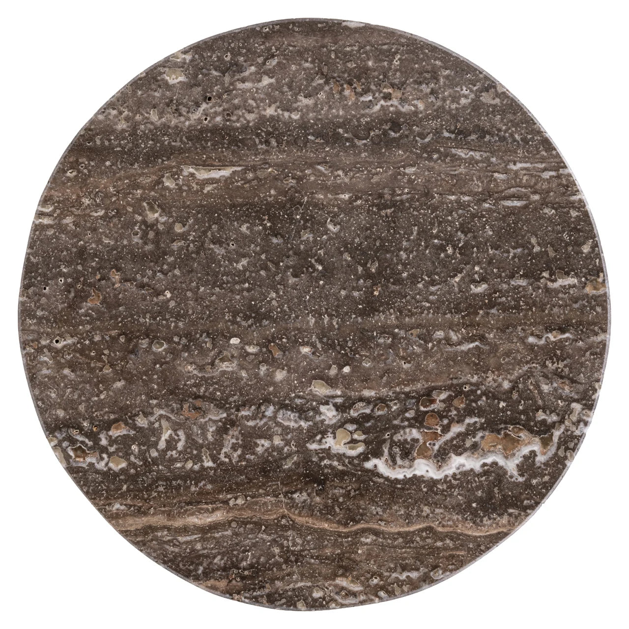 Deze bijzettafel heeft een ronde vorm met een compact en gesloten silhouet.