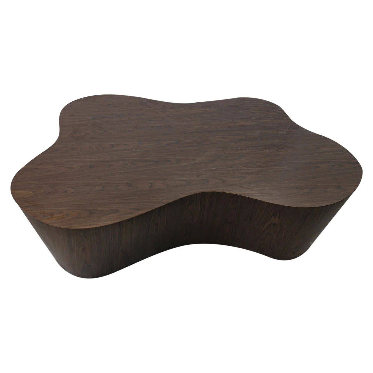 Deze salontafel heeft een laag en stevig silhouet met een duidelijke horizontale belijning.