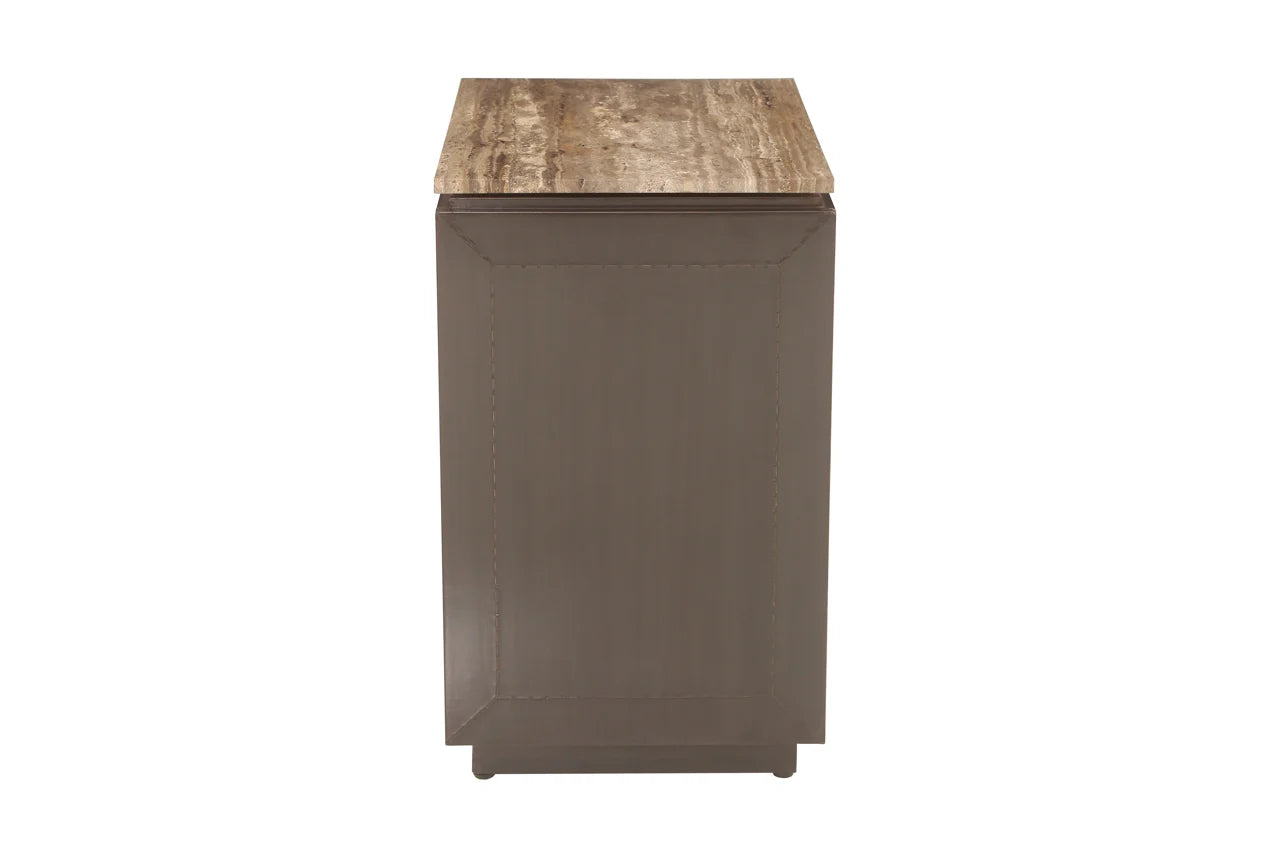 Nachttafel Russo in bruin heeft drie lades en biedt zowel opbergruimte als elegantie.