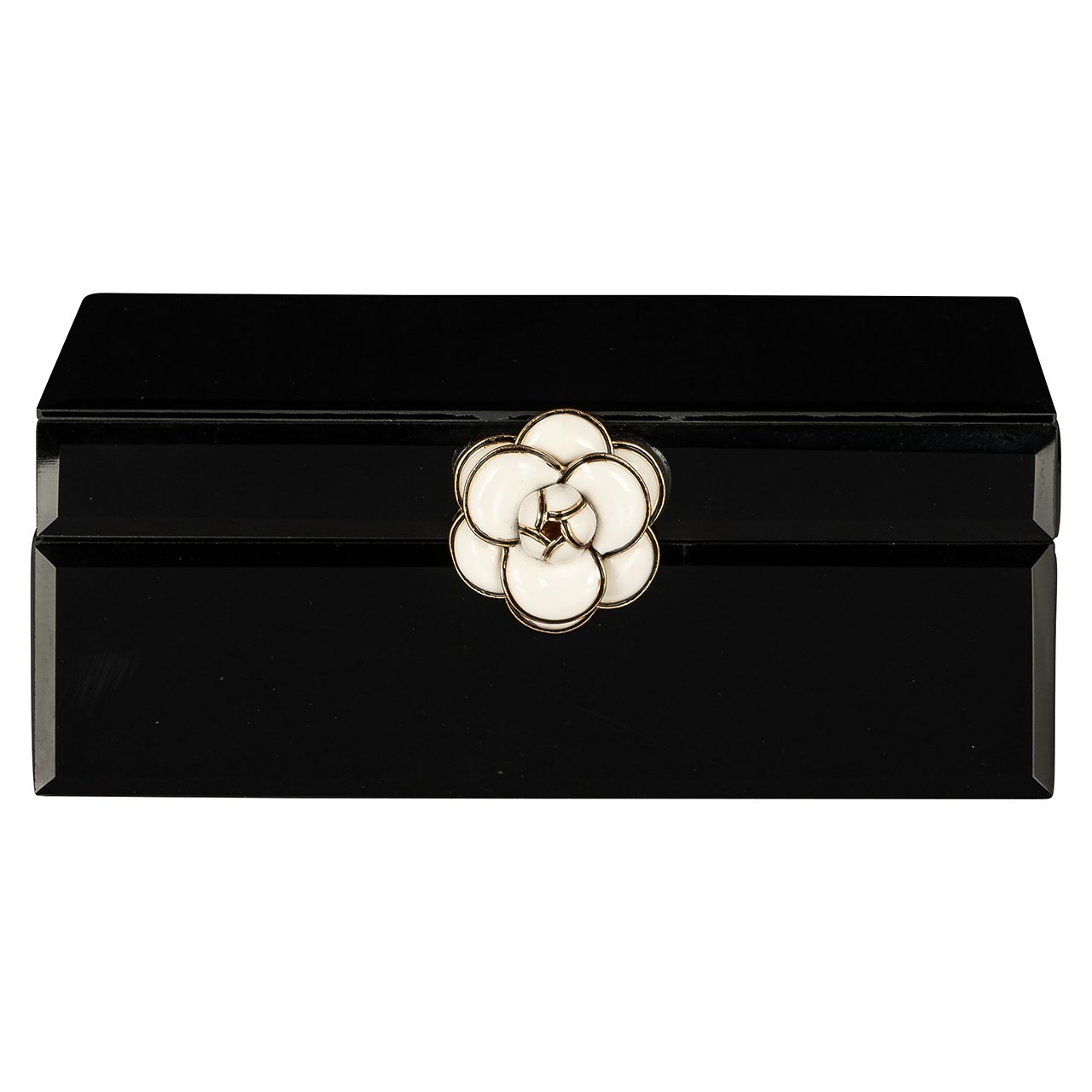 Juwelen box Vivy klein presenteert zich als een elegant opbergsysteem voor uw kostbaarheden. De diepe zwarte kleur van de box wordt verfraaid met subtiele gouden details die een vleugje luxe toevoegen. Deze box is niet alleen praktisch voor het veilig bewaren van uw sieraden, maar fungeert ook als een stijlvol decoratief element op uw kaptafel of nachtkastje.