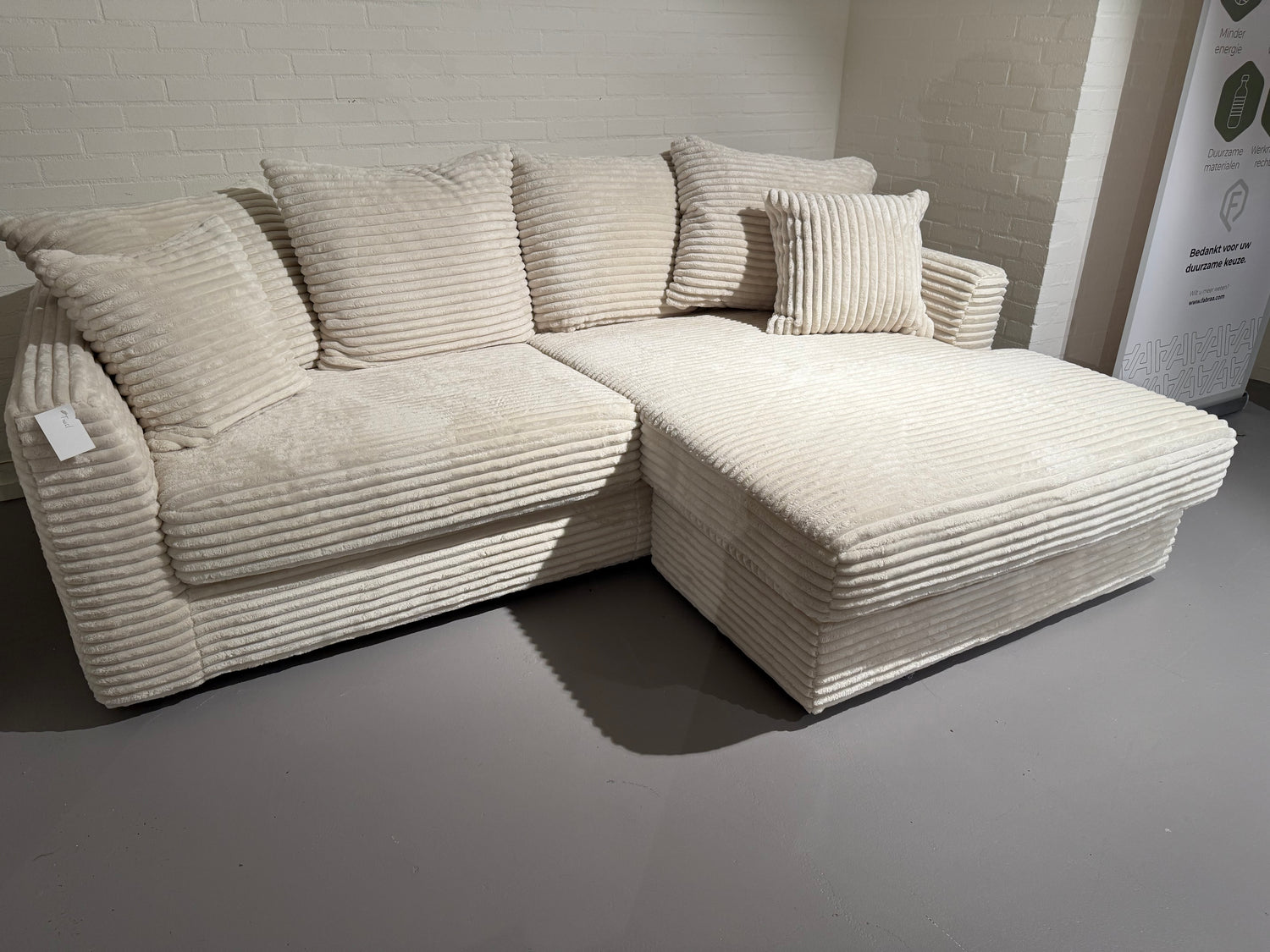 • Zachte ribfluwelen stof: Voelt heerlijk aan en geeft de bank een luxueuze en trendy uitstraling.