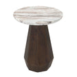 De bijzettafel Oberoy (45 cm) is een compacte maar luxe toevoeging aan ieder interieur, met een blad van Toronto marmer en een stevige voet van mangohout.