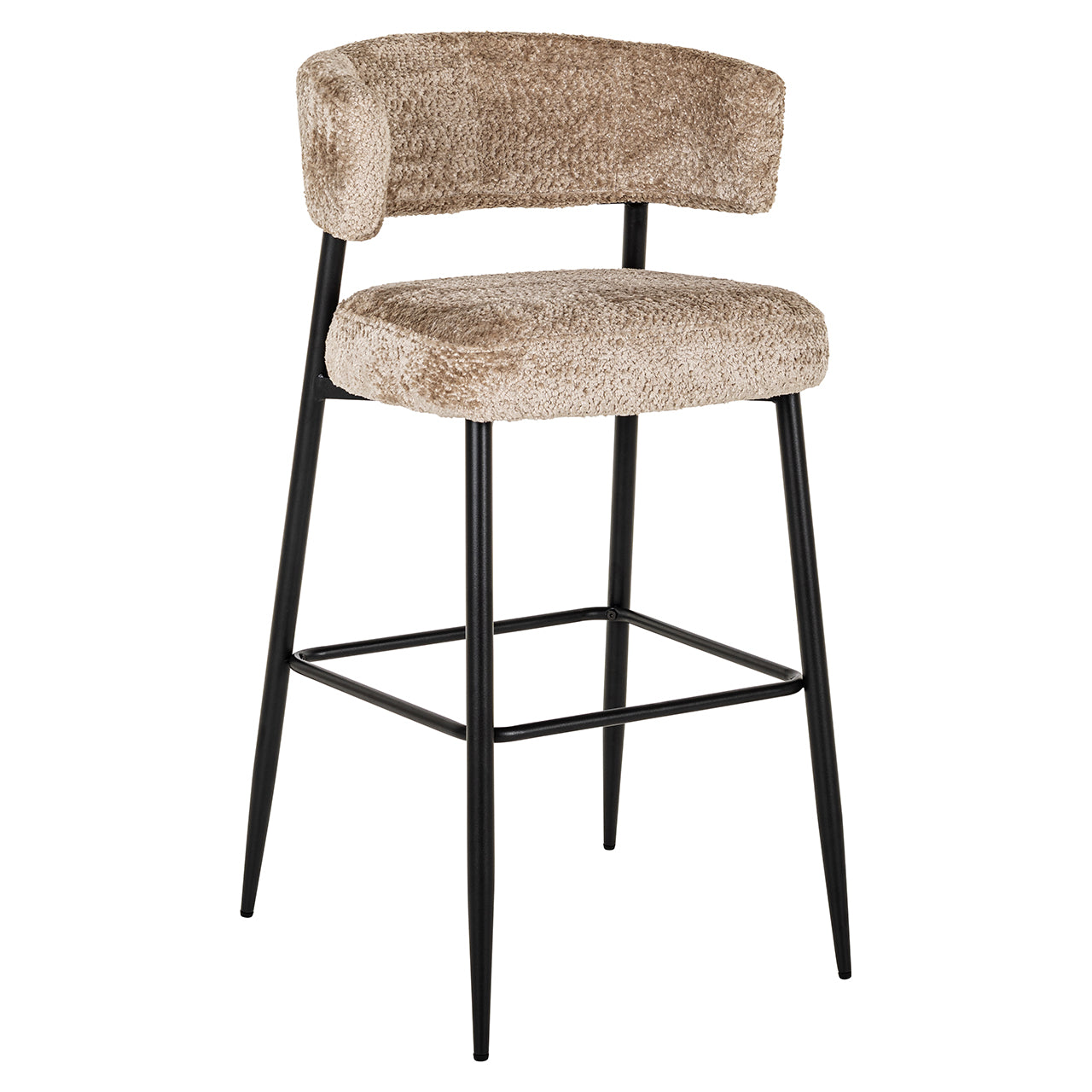 De counterstoel Rochelle, verkrijgbaar in trendy nature en sheep nature, combineert stijl en comfort op een verfijnde manier. De zachte bekleding, die verkrijgbaar is in twee natuurlijke tinten, zorgt voor een warme uitstraling en een aangename zitervaring. De ronde rugleuning biedt extra steun, terwijl de slanke zwarte metalen poten een modern en stevig accent toevoegen. De geïntegreerde voetsteun zorgt voor extra comfort bij langere zitmomenten. Rochelle wordt geleverd als set van twee en is ideaal voor gebruik aan een keukeneiland of bar. Deze stoelen voegen een eigentijds en luxe element toe aan elk interieur.