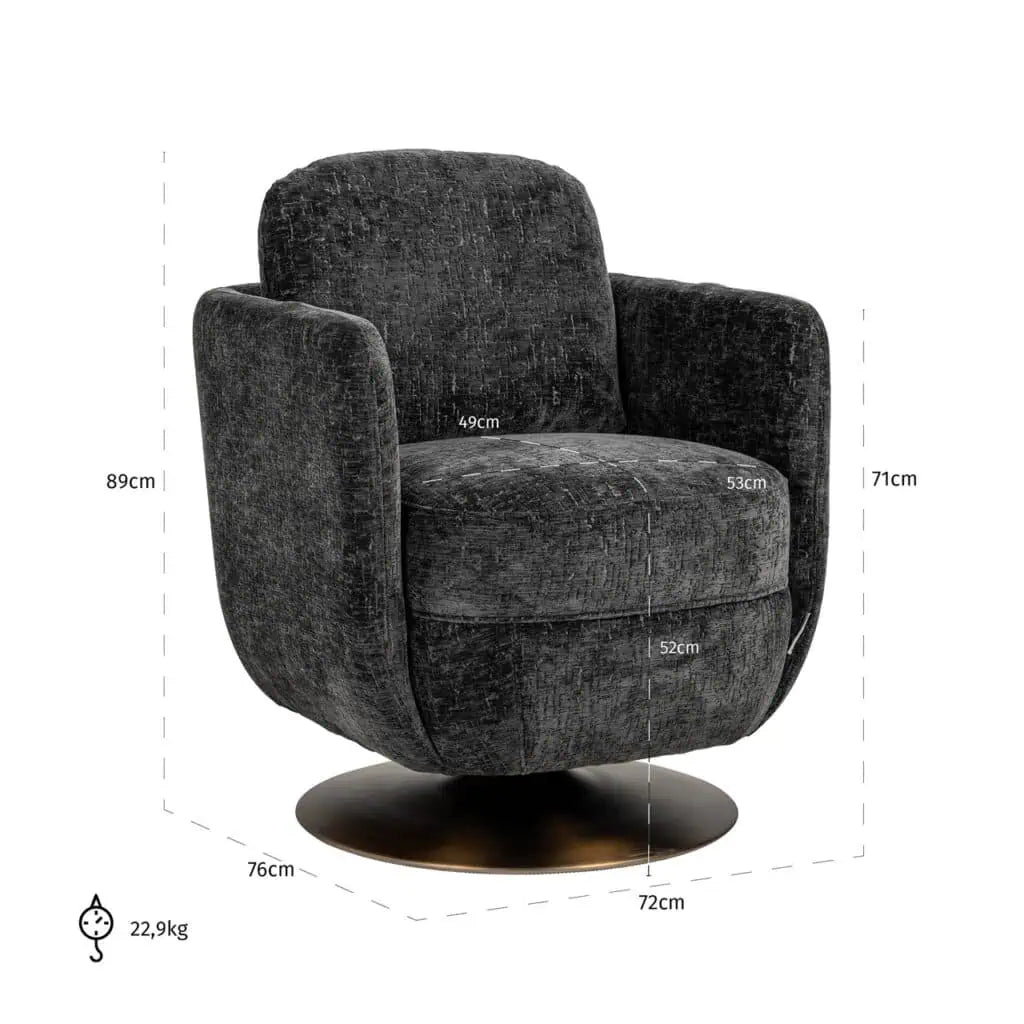 Draaifauteuil Turner Graphite Island is een stijlvolle en moderne stoel die comfort en elegantie combineert. Uitgevoerd in de rijke graphite island kleur, biedt deze fauteuil een subtiele maar toch opvallende aanwezigheid in elke ruimte. Het strakke en hedendaagse ontwerp, gecombineerd met de rijkelijk gestoffeerde zitting en rugleuning, zorgt voor optimaal zitcomfort. De draaibare basis voegt een extra laag functionaliteit toe.