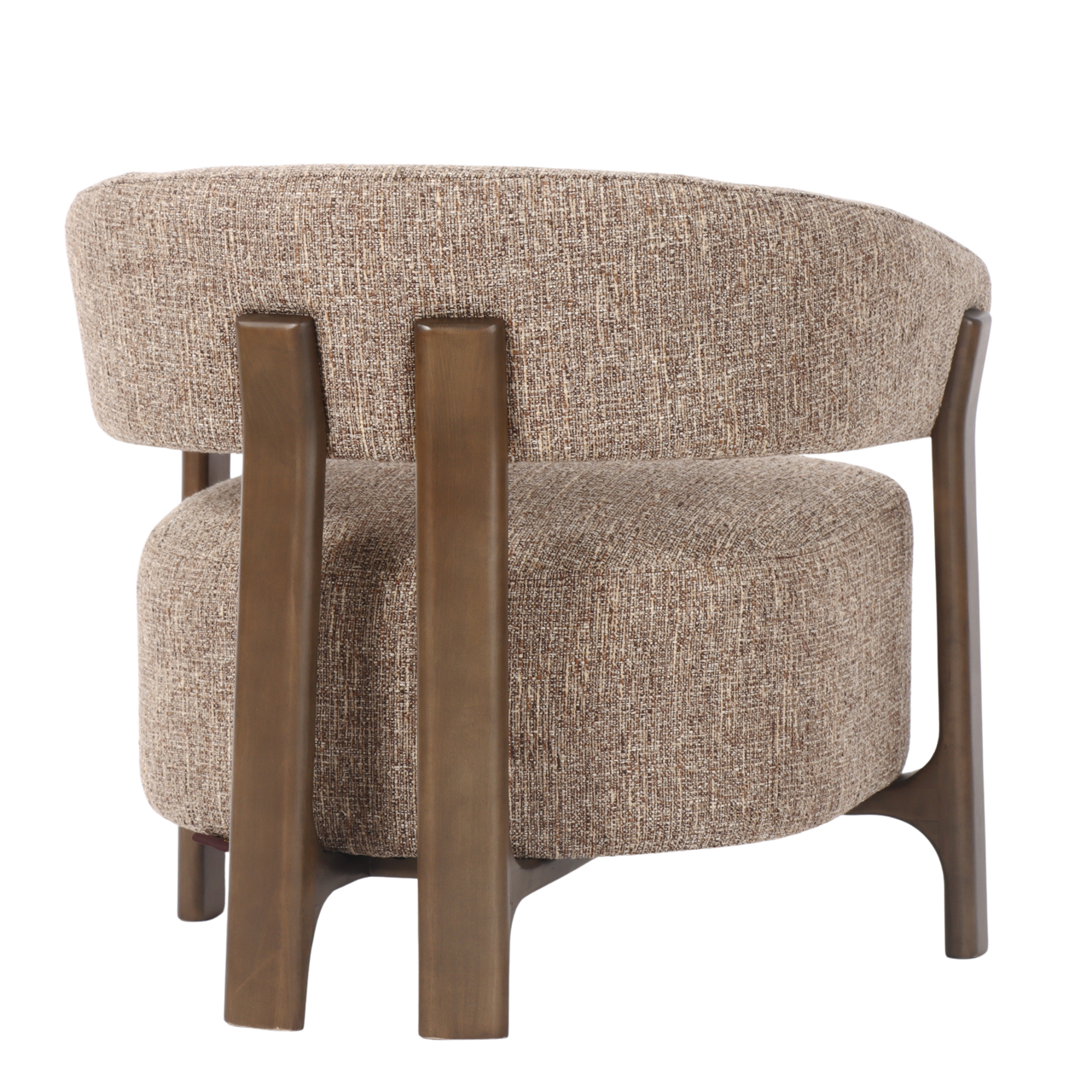 Fauteuil Dalara combineert een massief beukenhouten frame met een afgeronde rugleuning en compacte zitting. Bekleed met brown tweed-stof voor een warme en verfijnde uitstraling. Ook verkrijgbaar in hazel.