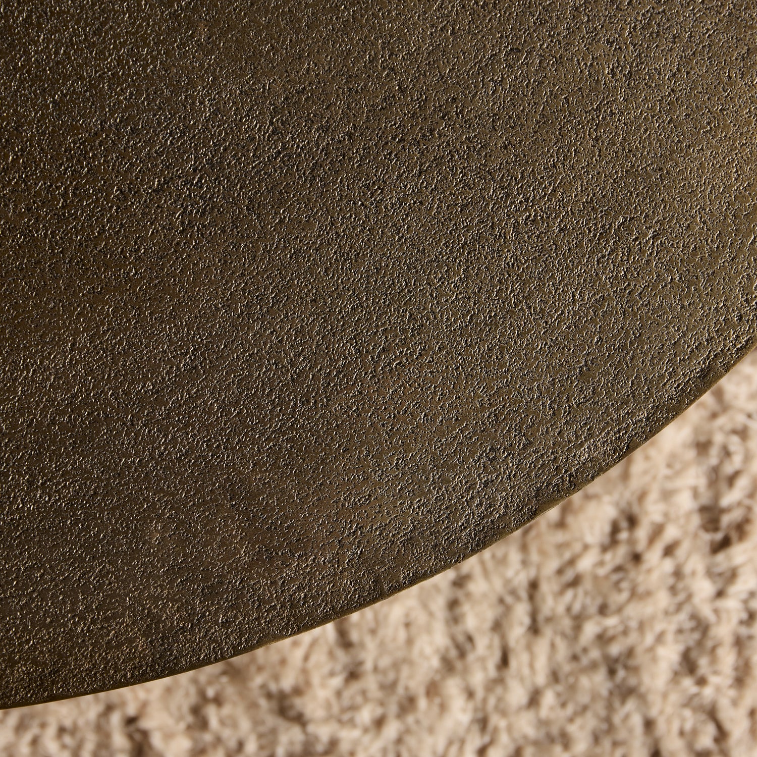 De Ziva salontafel is een opvallende blikvanger, gemaakt van aluminium in een elegante gouden kleur.