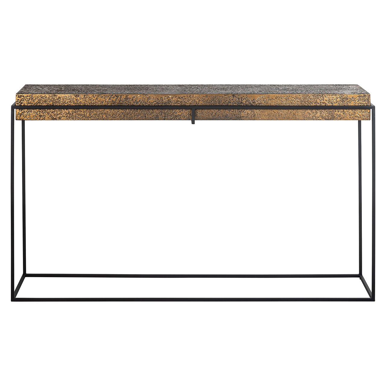 Onze Dover is een prachtige wandtafel in een industriële stijl. Elegant en stijlvol, het combineert perfect slanke ijzeren poten met een uniek tafelblad. Dankzij de verstevigde structuur is het een robuust dressoir. Functioneel en veelzijdig, het is gemakkelijk te combineren in elke decoratieve stijl.