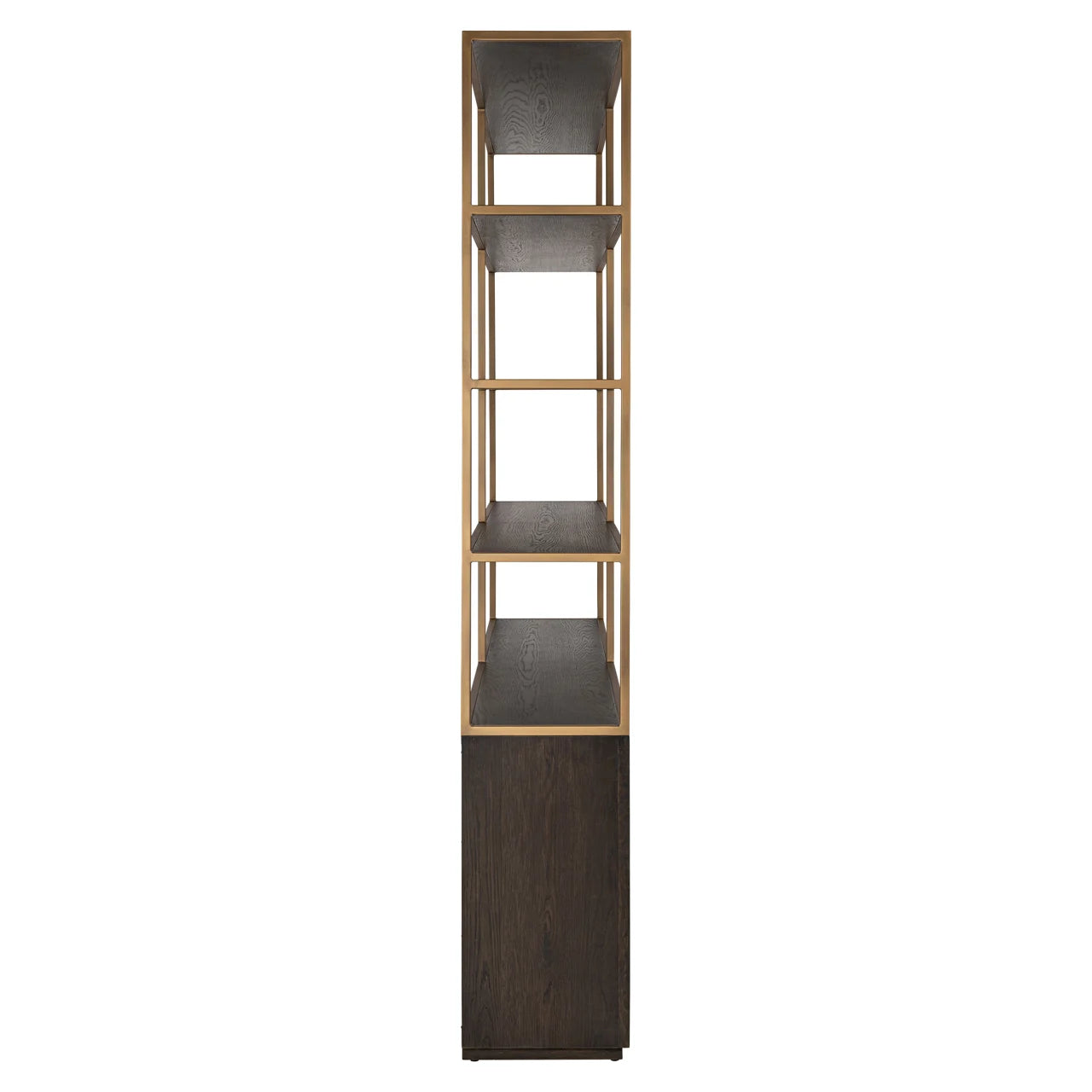 Vitrinekast Carter large is ontworpen zonder glas en heeft vier open vakken en een donker frame.