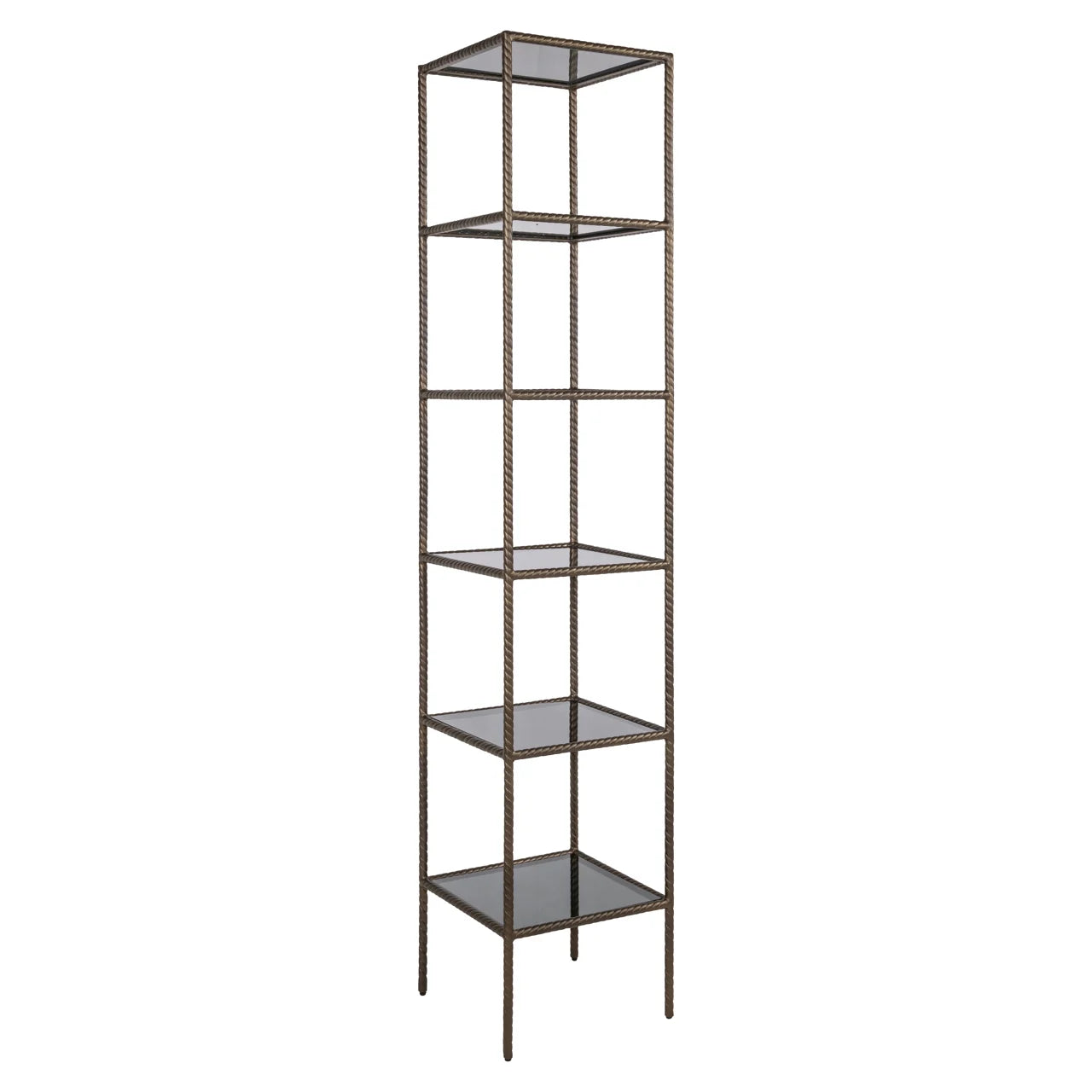 Vitrinekast Sheridon in goud is een echte eyecatcher en combineert luxe met functionaliteit.