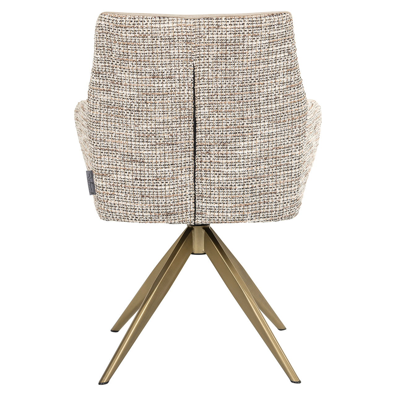 De Draaistoel Lisonne in trendy nature en khaki velvet combineert comfort en stijl in een elegant design. De zachte fluwelen zitting in een subtiele khaki tint biedt een luxe en comfortabele zitervaring, terwijl de rugleuning bekleed is met een geweven stof in trendy nature, wat zorgt voor een aantrekkelijk contrast. De gouden metalen draaipoot voegt een eigentijds en verfijnd accent toe, en de draaifunctie maakt de stoel zowel praktisch als veelzijdig. Lisonne is perfect voor wie een modern en luxueus element wil toevoegen aan de woon- of werkruimte. Deze fauteuil past moeiteloos in diverse interieurstijlen en biedt zowel comfort als functionaliteit.