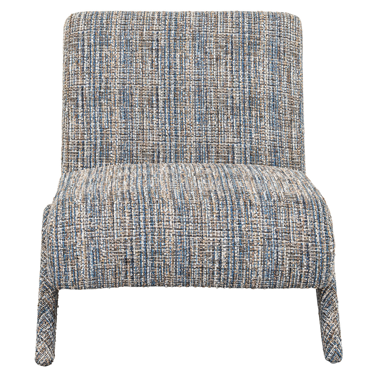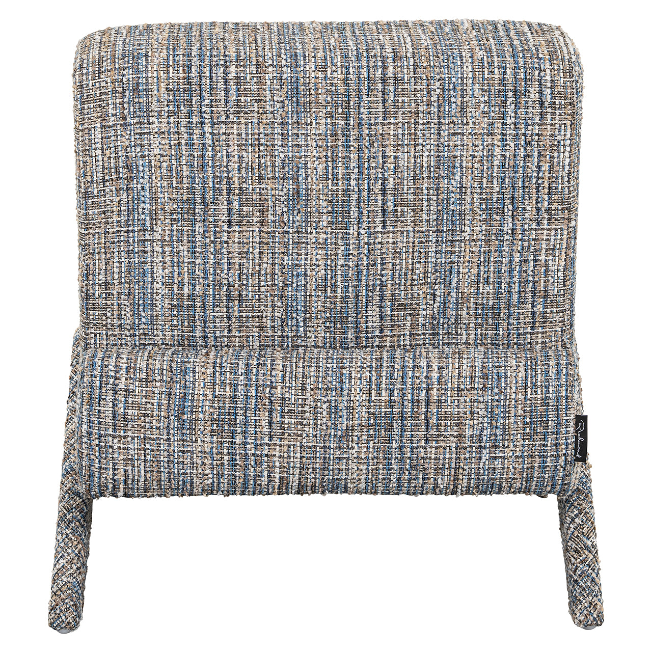 De fauteuil Lexi, verkrijgbaar in greige coco en blue coco, biedt een minimalistisch ontwerp met een moderne flair.