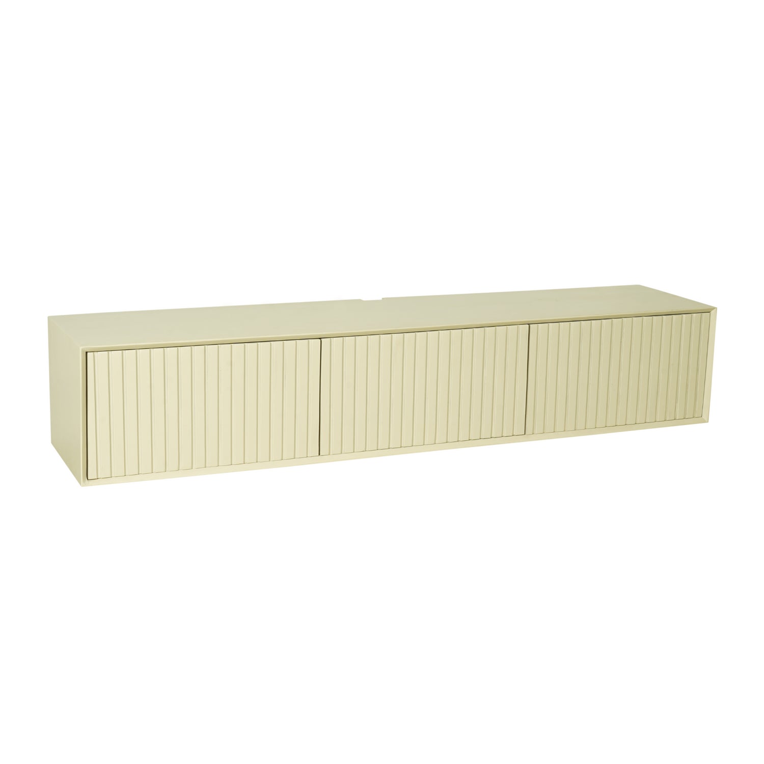 Ontdek het stijlvolle Zwevend tv-meubel Madison Sand, gemaakt uit prachtig mangohout en gedetailleerd met een verticaal lattenpatroon op de deuren.