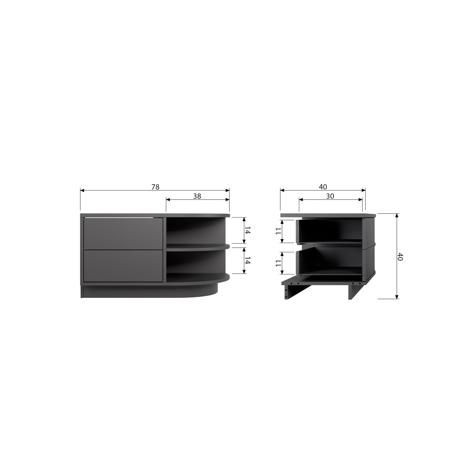 Finca Tv Meubel Rond Rechts 78 Cm Grenen Diepzwart [Fsc]