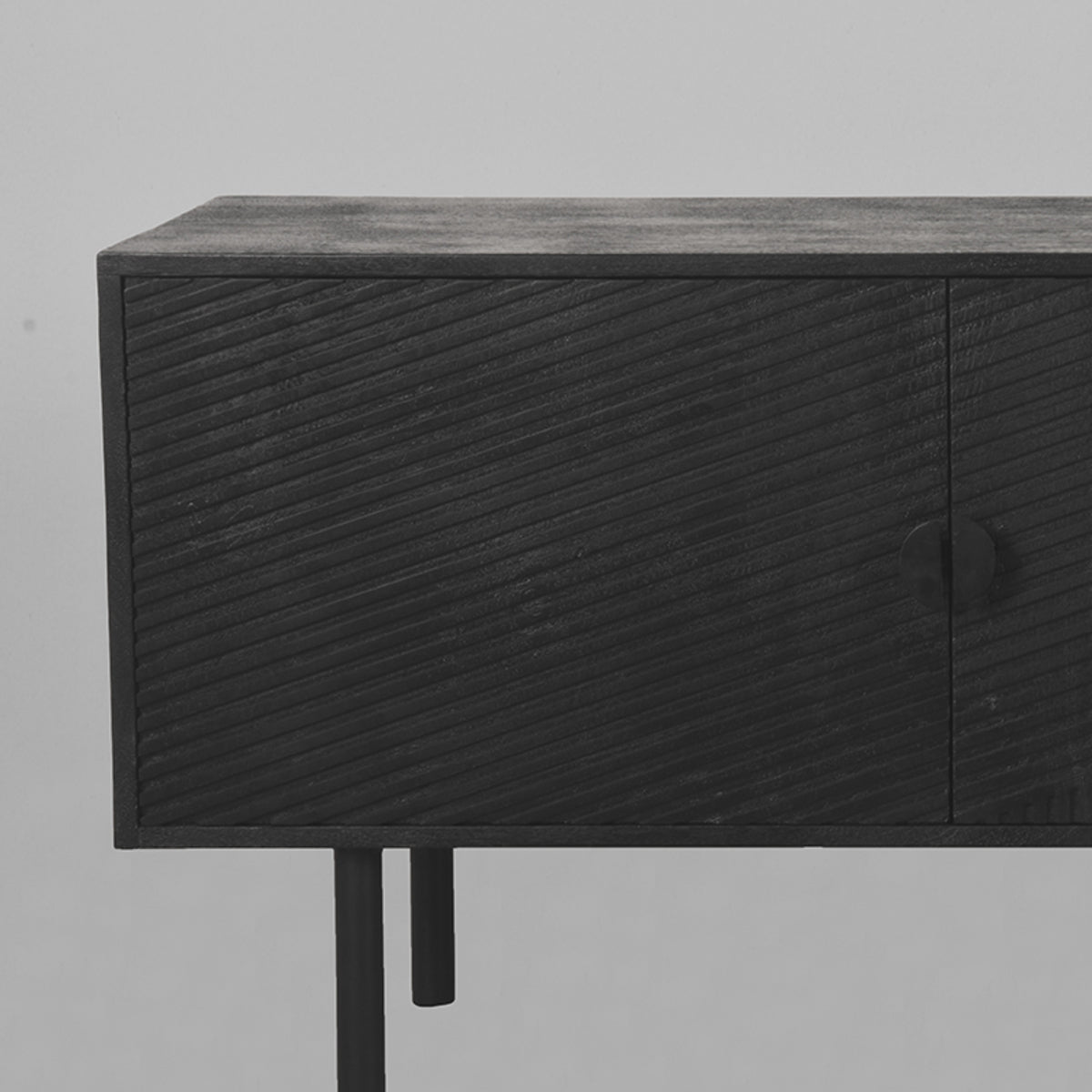 Tv-meubel Cotia van LABEL51 is een speels meubel uitgevoerd in zwart mangohout.