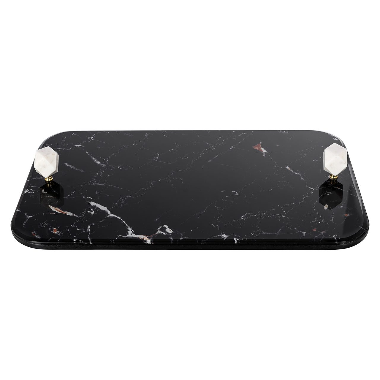 Ontmoet het verfijnde Yaya dienblad, een stijlvol ontwerp gemaakt van hoogwaardig glas en voorzien van een uniek marmermotief.