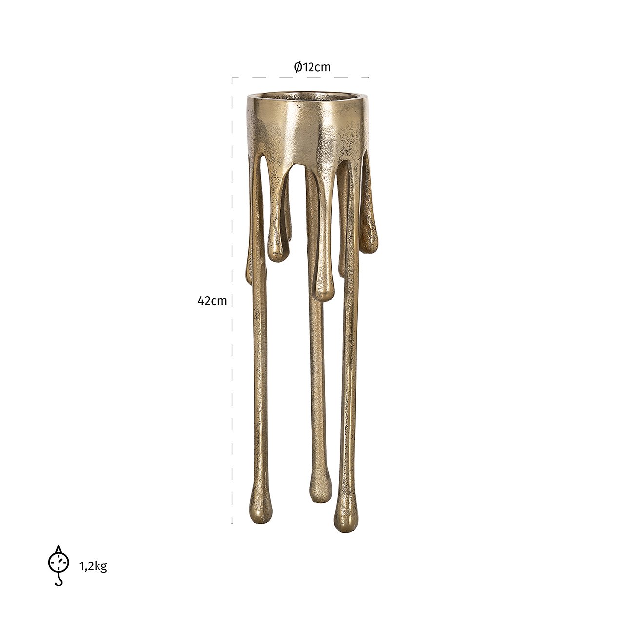 De Kandelaar Lorin, met zijn druppelvormig ontwerp, is een uniek en opvallend decorstuk. Gemaakt van schitterend goud aluminium, vangt deze kandelaar het licht op een betoverende manier op en straalt hij een warme en luxe sfeer uit. De druppelvorm geeft het een moderne en toch tijdloze uitstraling, wat het geschikt maakt voor diverse interieurstijlen. Ook leverbaar in een kleinere variant.