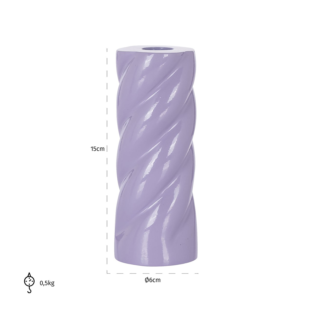 Deze kandelaar straalt een serene sfeer uit met zijn subtiele lichtpaarse kleur.