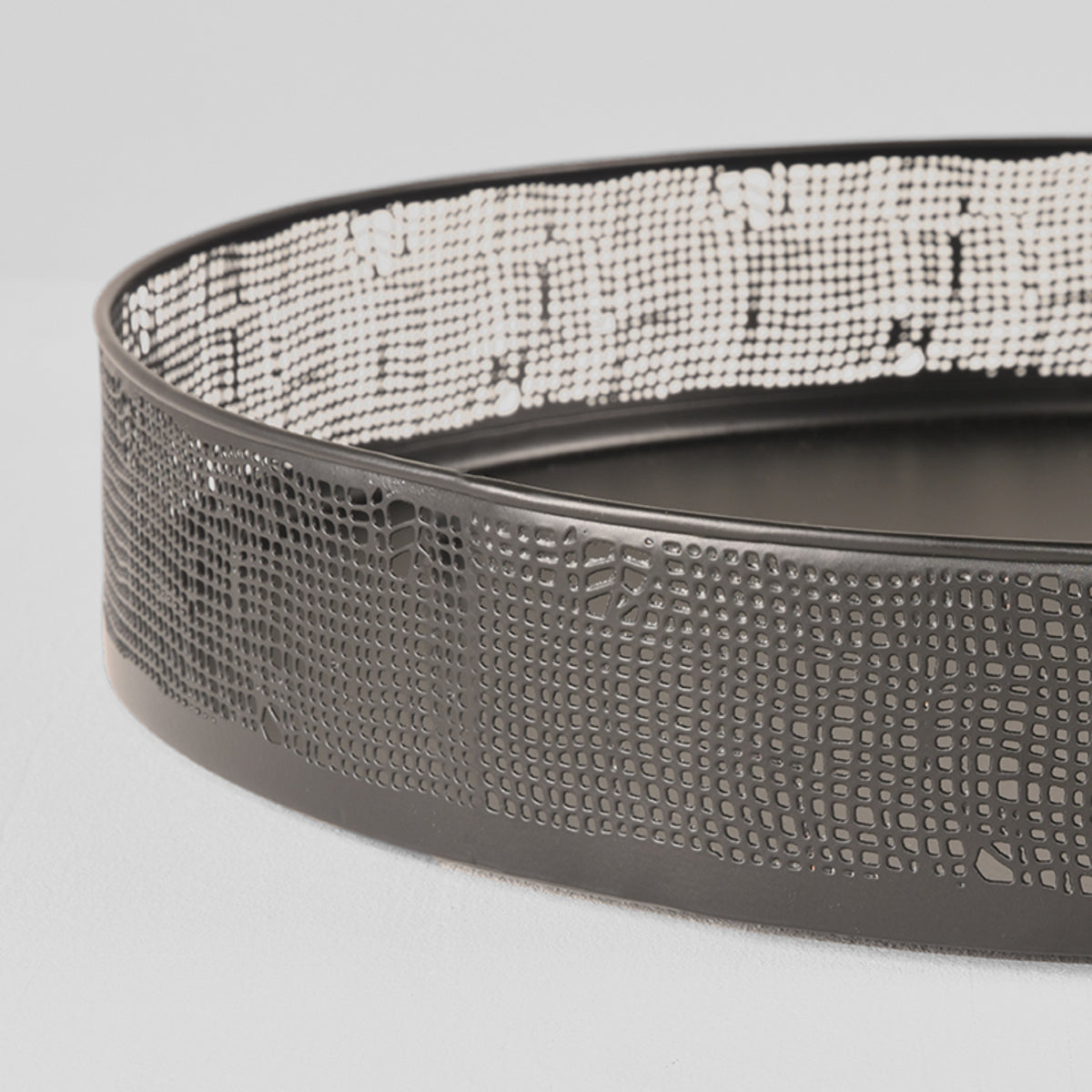 Set Dienbladen van LABEL51 in zwart metaal. Deze stijlvolle set bestaand uit twee dienbladen. De opstaande rand heeft een mooie opengewerkte structuur en is voorzien van handige handvatten. Het opengewerkte patroon is geïnspireerd op de structuur van grof geweven jute. Gebruik de dienbladen bijvoorbeeld tijdens een gezellige high tea of borrel of laat ze juist pronken als decoratie op tafel.