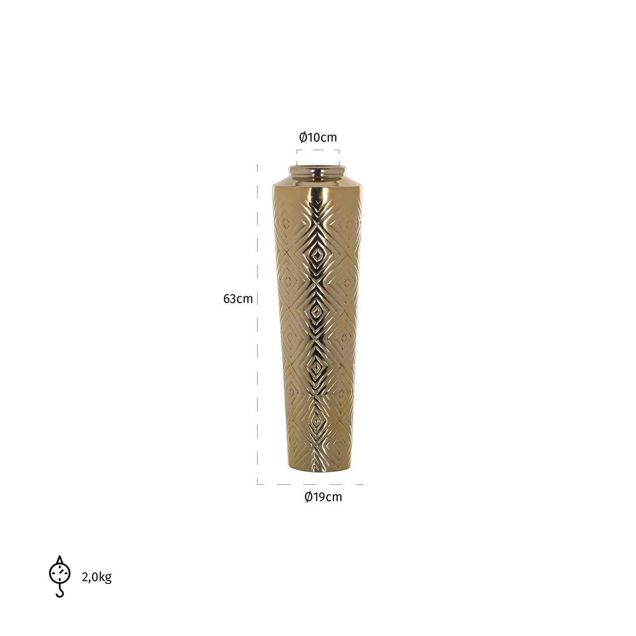 Wow, wat een plaatje is deze Vaas genaamd Dana! De decoratieve vaas is gemaakt van brushed gold en heeft meerdere ingangen om planten in te zetten. Deze vaas geeft jouw interieur een unieke sfeer. Let op: de vaas is niet behandeld met een waterafstotende coating, hierdoor is de vaas niet geschikt voor water. Ook beschikbaar in het groot.