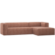 - Stoere hoekbank - Bekleed met een chenille velvet (100% polyester) - Grof en volumineus design - H 73 cm x B 305 cm x D 96/175 cm De Bean bankencollectie komt vanuit het Nederlandse interieurlabel WOOOD en zorgt met zijn robuuste design voor een stevige basis in jouw zithoek. De Bean staat bekend om zijn eenvoudige lijnenspel, royale stofopties en hoge zitcomfort. De lage poten en de rondom gestoffeerde kwaliteit zorgt ervoor dat het Bean item grof maar rustig oogt. De vele uitvoeringen zijn eindeloos te combineren, Go Big with Bean! Materiaal Onze Benson is een geweven stof met een melange-effect. De samenstelling is 100% polyester, wat de Benson-stof zowel stevig als comfortabel maakt. De stof heeft een Martindale-waarde van 70.000 en is daarmee geschikt voor dagelijks gebruik. Met de juiste zorg blijft de Benson-stof jarenlang van goede kwaliteit. Onze rijke Ferra velvet heeft een opvallende structuur, wat zorgt voor een luxe uitstraling en bijzondere glans. De zachte stof is gemaakt van 100% polyester, wat het onderhoud heel gemakkelijk maakt. De Ferra structuur velvet heeft een Martindale van 85.000 en is dus goed bestand tegen krassen, verkleuring en pillen. Ferra voelt zeer zacht aan vanwege de chenille garens, de jacquard weeftechniek zorgt voor een volumineuze bekleding. Afmetingen - Hoogte: 73 cm - Breedte: 305 cm - Diepte: 96/175 cm - Zithoogte: 44 cm - Zitbreedte totaal: 243 cm - Zitbreedte chaise longue: 112 cm - Zitdiepte: 67 cm - Zitdiepte chaise longue: 145 cm - Hoogte armleuning vanaf vloer: 73 cm - Hoogte armleuning vanaf zitting: 31 cm - Breedte armleuning: 32 cm - Rugleuninghoogte vanaf zitting: 31 cm - Poothoogte: 2,5 cm - Gewicht: 137 kg - Maximaal draaggewicht: 100 kg per zitplaats Onderhoud Houd de stof schoon door regelmatig te stofzuigen met een zachte borstel om de structuur niet te beschadigen.Vlekken? Gebruik een op water gebaseerde oplossing om de vlek voorzichtig te verwijderen en neem daarna nog even af met een licht vochtige doek. Wrijf niet, maar dep! Wrijven kan leiden tot beschadigingen of blijvende vlekken in de stof. Vermijd langdurige blootstelling aan direct zonlicht om de kwaliteit van de stof optimaal te behouden. Levering Deze hoekbank wordt in twee pakketten geleverd. De elementen zijn eenvoudig met elkaar te verbinden door middel van beugels. Plaats bij harde vloeren viltglijders onder de poten. Dit voorkomt beschadigingen aan de vloer.
