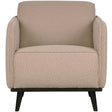 - Luxueus en elegant design - Onderdeel van de bekende Statement-serie - Bekleed met een geweven boucle (100% polyester) - H 77 cm x B 72 cm x D 93 cm De Statement-serie van het Nederlandse interieurlabel WOOOD wordt gekenmerkt door het elegante, afgeronde design en het zeer hoge zitcomfort.