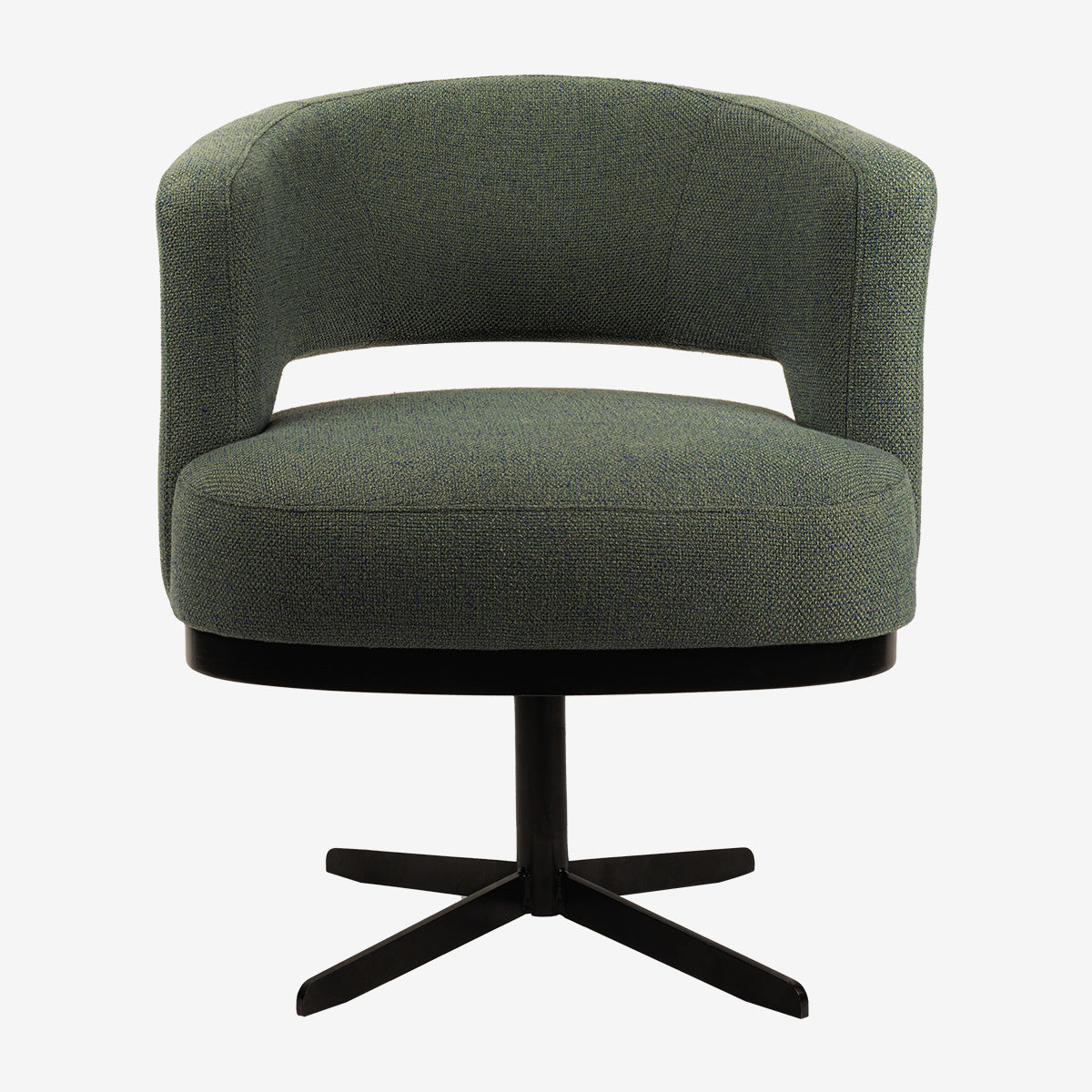 Het unieke kenmerk van deze stoel is dat deze 360 graden kan draaien, waardoor je gemakkelijk van richting kunt veranderen zonder de stoel te hoeven verplaatsen. Het frame is vervaardigd uit stevig metaal en multiplex, waardoor de stoel stabiel en duurzaam is en jarenlang meegaat.