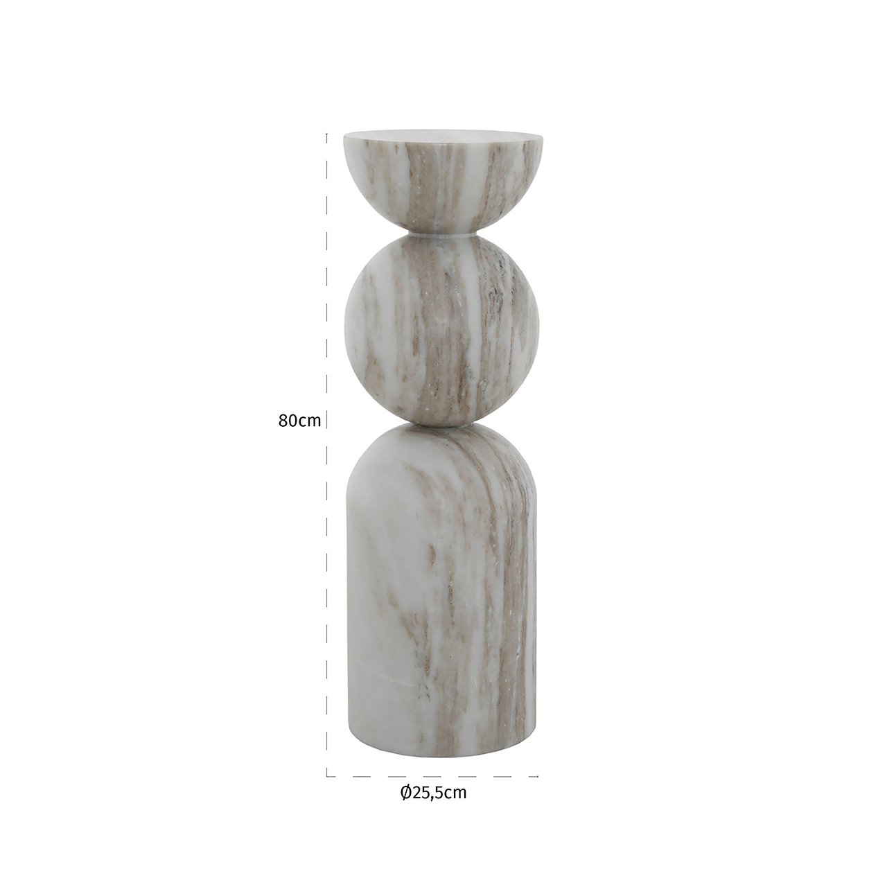 De Pilaar Lewis is een opvallend en elegant meubelstuk, volledig vervaardigd uit hoogwaardig marmer. Het ontwerp combineert verschillende geometrische vormen, waaronder een halve bol, een bol en een cilindrische basis, wat de pilaar een unieke en sculpturale uitstraling geeft. De natuurlijke aders en kleurnuances van het marmer voegen een gevoel van luxe en verfijning toe, waardoor deze pilaar een perfecte keuze is voor het presenteren van kunstwerken, vazen of andere decoratieve items. De Pilaar Lewis brengt een vleugje moderne kunst en tijdloze elegantie in elke ruimte.