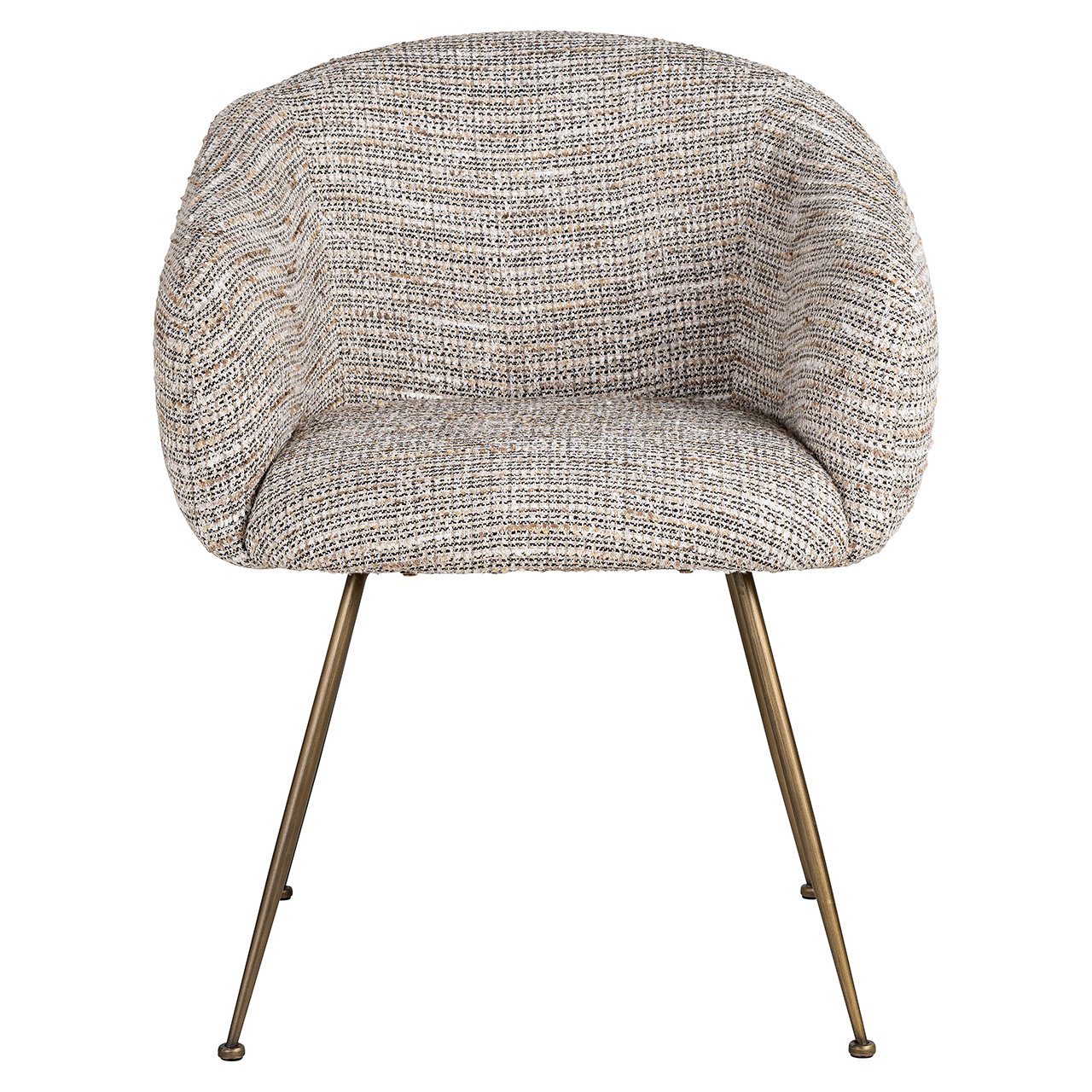 Stoel Amalfi is een stoel met een comfortabele zitting, op dunne poten. De geborsteld gouden poten in combinatie met de grof geweven stof Beige Coco creëren een exclusief geheel. De grof geweven stof bestaat uit verschillende natuurlijke tinten. Amalfi is de eye-catcher in uw luxueuze eetkamer!
