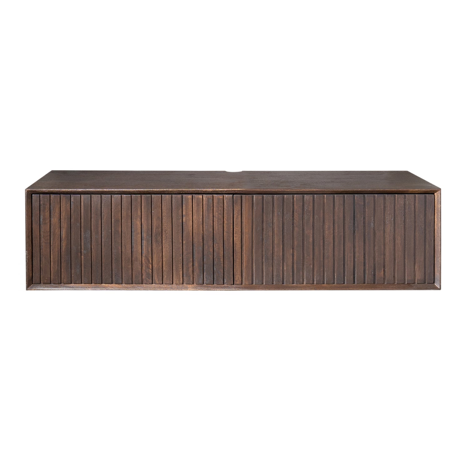 Ontdek het stijlvolle Zwevend tv-meubel Madison Brown, gemaakt uit prachtig mangohout en gedetailleerd met een verticaal lattenpatroon op de deuren.